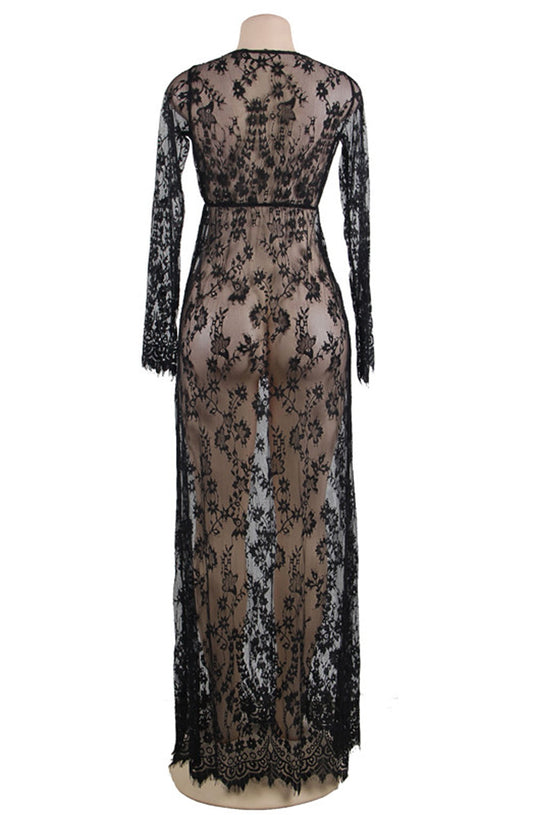 YXQ Long Black Gown Bedroom Wear Nightwear
