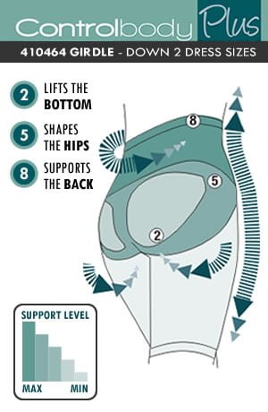 High waist girdle. Firm compression providing a high level of support. Shapes the waist supports the bottom smooth the tummy slims the thighs shapes the hips and supports the back. Natural cotton gusset. Item comes packaged in a Control Body box.